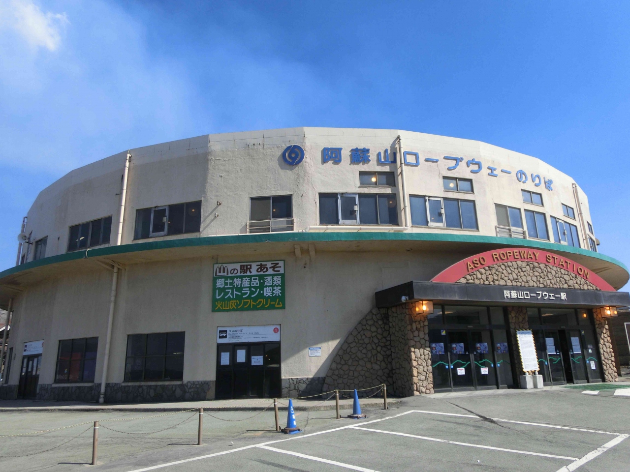 なお、阿蘇山西駅の辺りの駐車場は、草千里と違って無料なので、草千里まで来るなら、土産物のためだけでも阿蘇山西駅まで来る方が良いです。そして、ついでに、このプロジェクションマッピングも体験すると良いでしょう。ただ、駅舎の外観からは、スーパーリングの宣伝などが目立ってないので、これじゃあ知らないと気付かないだろうと思いました。ロープウェーの運休を知っている人は、もしかしたら駅舎に入らないかもしれず、阿蘇スーパーリングの存在に気付けば見てみたいと思うかもしれない観光客を、逃しているような...長期のロープウェー運休とか、先が読めない状況で、働いてる人も大変でしょうが、こういう施設を作ったのは天候に左右されない収入源を確保するような意味合いもあるのではないかと思うので、もうちょっと賑わうと良いのになーと思いました。
