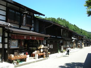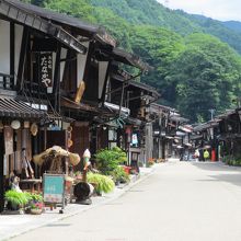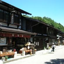 重要伝統的建造物群保存地区に指定されている奈良井宿は塩尻インターから35分ほどのところにあります。奈良井川に沿って約1km、まるで江戸時代にタイムスリップしたかのように民家が美しく昔の姿のまま並んでいます。今もって宿を営んでいるところや江戸時代そのままの水場も残っています。また道路沿いには地元の名産品である漆器店や工芸品店などもあります。近くには橋脚を持たない総ヒノキ造りの木曾の大橋や江戸時代の雰囲気を残す杉並木もあります。のんびり散策するにはもってこいの宿場町です。