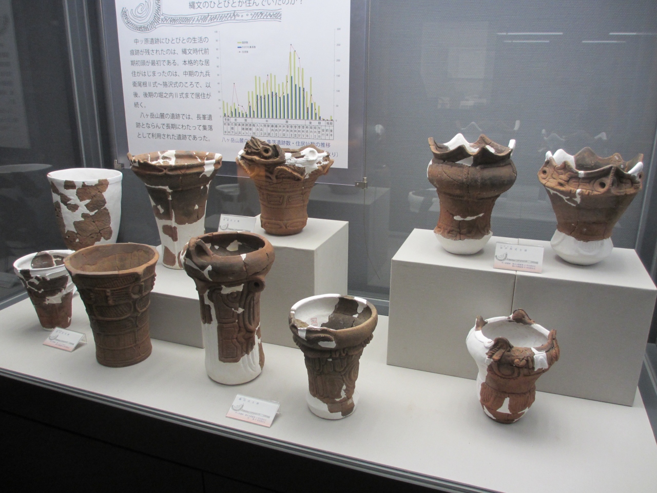 八ヶ岳山麓では5000年ほど前に縄文文化が繁栄しました。そのころ使用されたと思われる土器や石器が展示されています。とりわけ国宝2点“縄文のビーナス”と“仮面の女神”は見応え十分です。考古館の裏手には与助屋根遺跡が復元されています。考古館では土器づくり体験学習や映像による見聞きをすることもできます。近隣には仮面の女神が発掘された中ツ原遺跡もあります。
