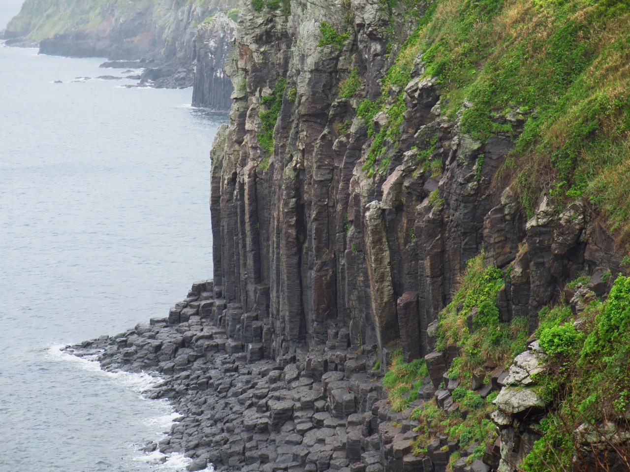 生月島の北西部に位置するサスペンスドラマに使われそうな断崖です。良く見ると岩が面白い形をしており、亀甲模様の柱のような岩と、下方には切株にも炭にも見える奇岩がたくさん。この地の人々はこれが塩俵を積み重ねた形と思ったそうで、この名が付けられたとか。