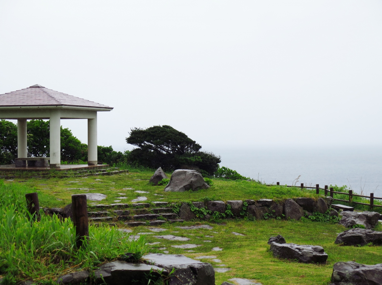 断崖がのぞめる場所に駐車場と展望所があり、展望所にはあずま屋もあるので、天気が良ければ青い海を見ながらのんびりできそうです。