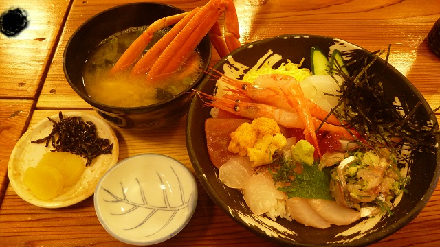 2泊3日の北陸旅行では行く先々で海の幸を満喫する予定だったが原因不明の胃腸の不良によりほとんど食事がとれず。最終日にようやく回復の兆しが見られたので、東尋坊に向かう道中、観光客向けの店が並ぶ一角にあるやまに水産で食事をとることに。写真の海鮮丼は日本海の海の幸が満載。うにの臭みもなく、鮮度はまずまず良いようだった。