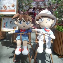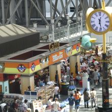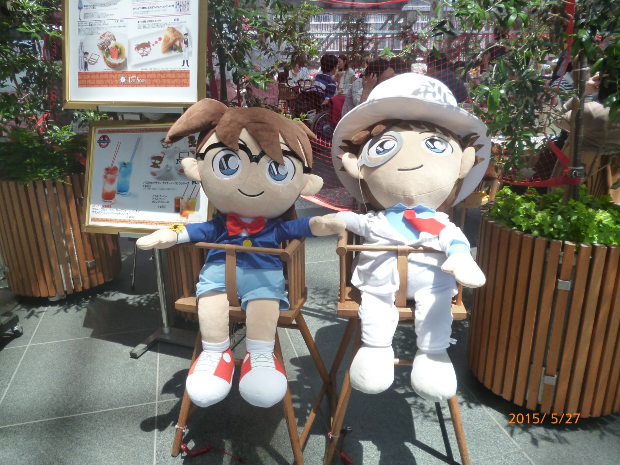 JRの線路の上にかかる通路の広場です。今こちらで名探偵コナンのレストランがオープンしています。ランチ時など、行列ができています。コナンって人気があるんだなと思いました。メニューを見ましたがオムライス、パスタなど。お値段高めです。