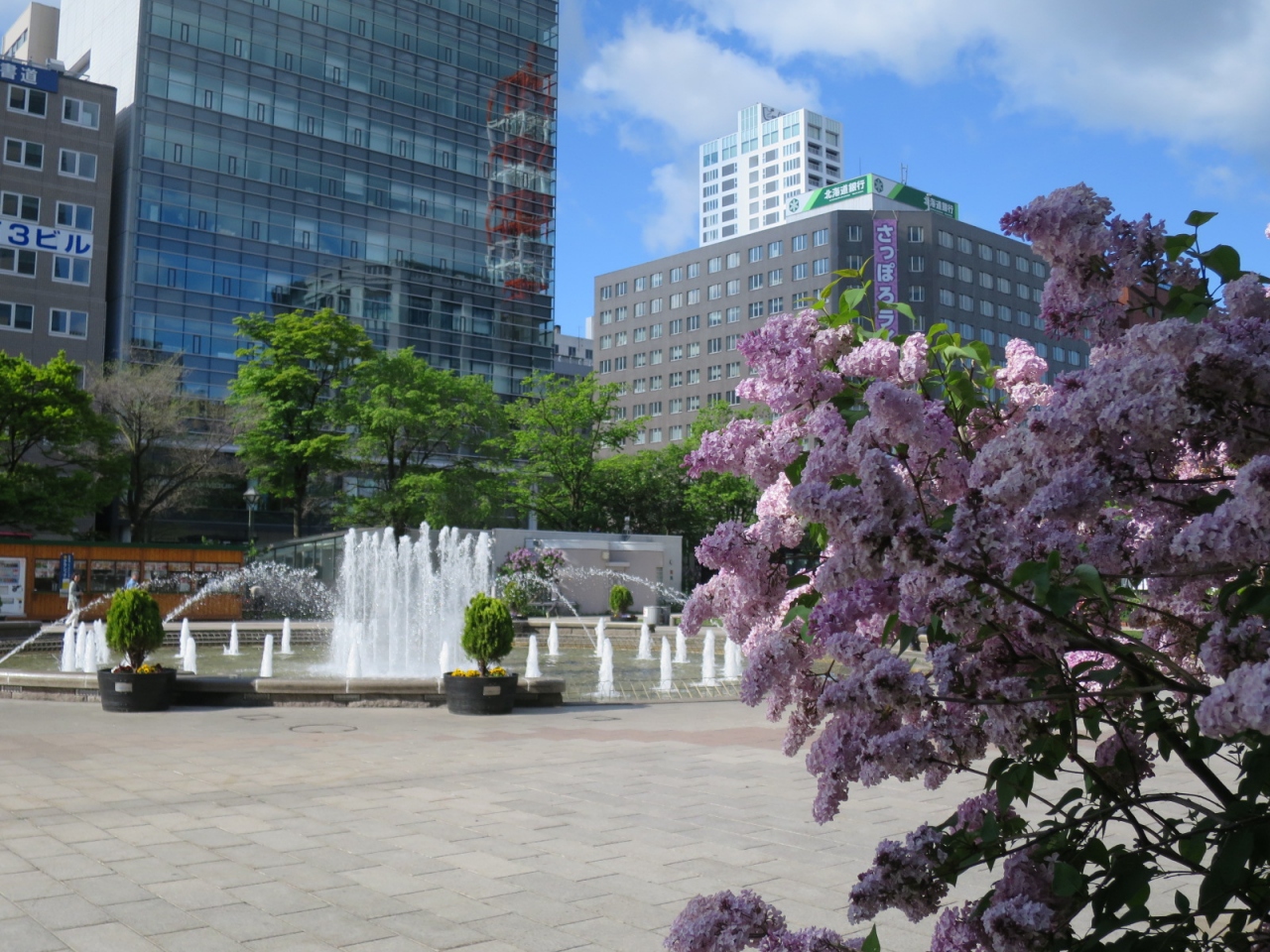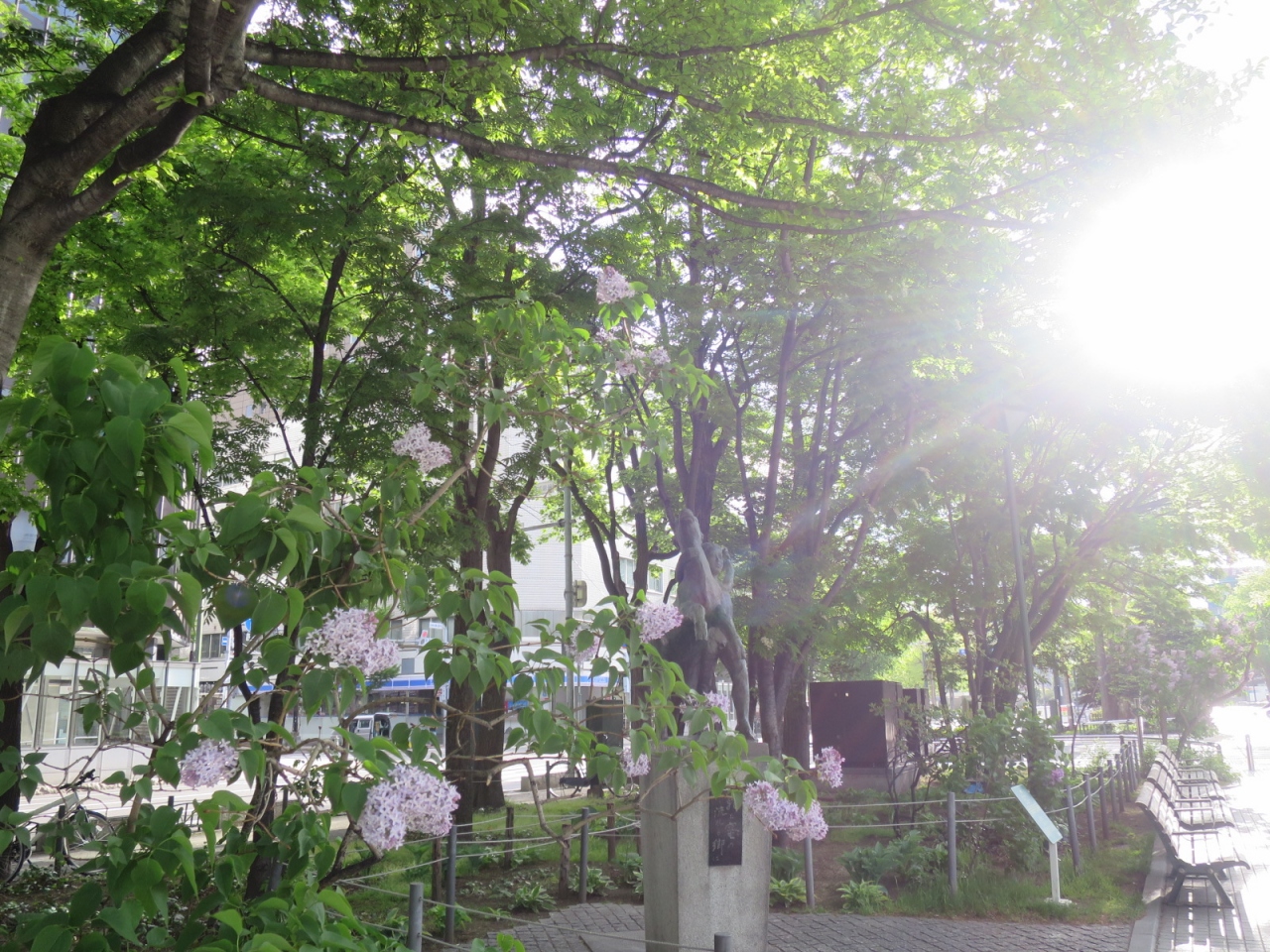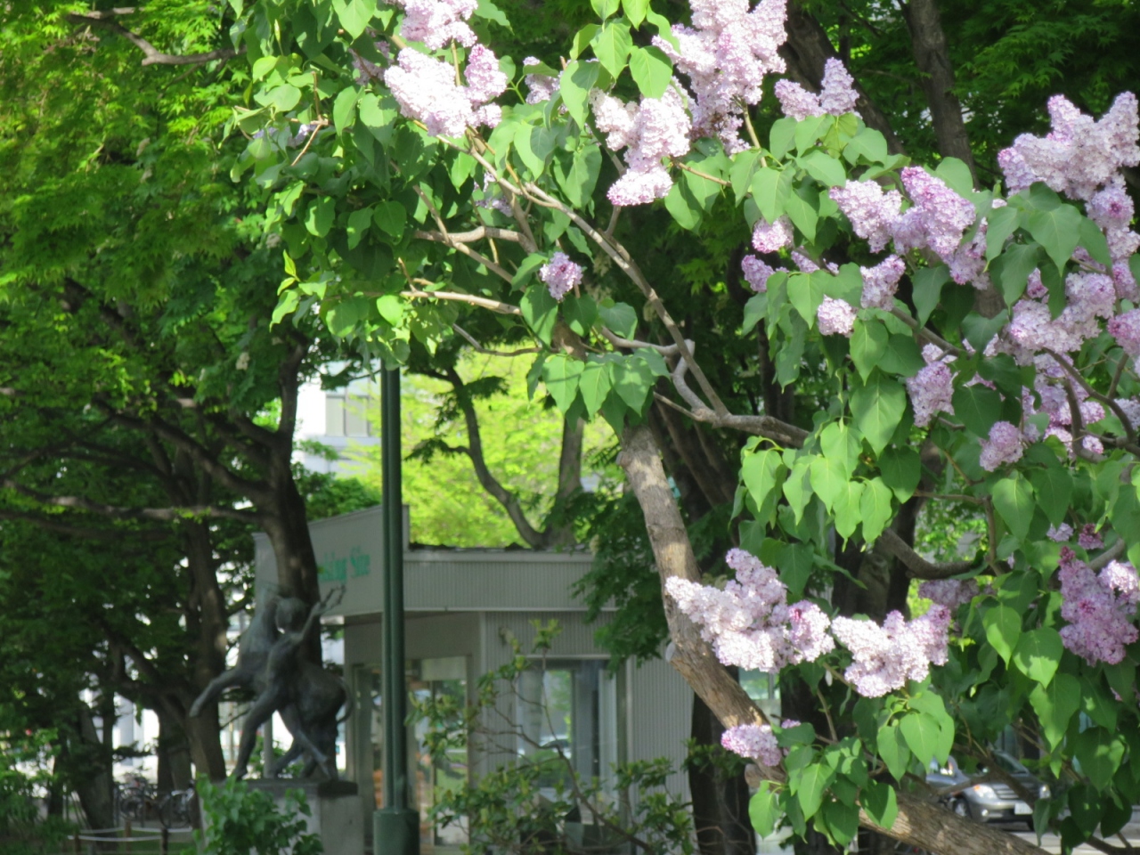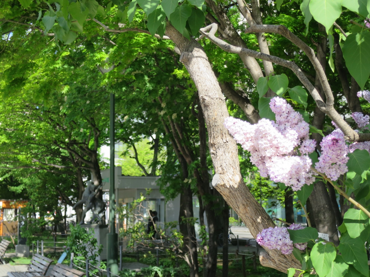 大通公園はライラックの名所ですが、像の近くのライラックなど若木や低木のものは、他の高い木の日陰になってしまい、花付きの悪いものもあります。