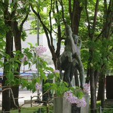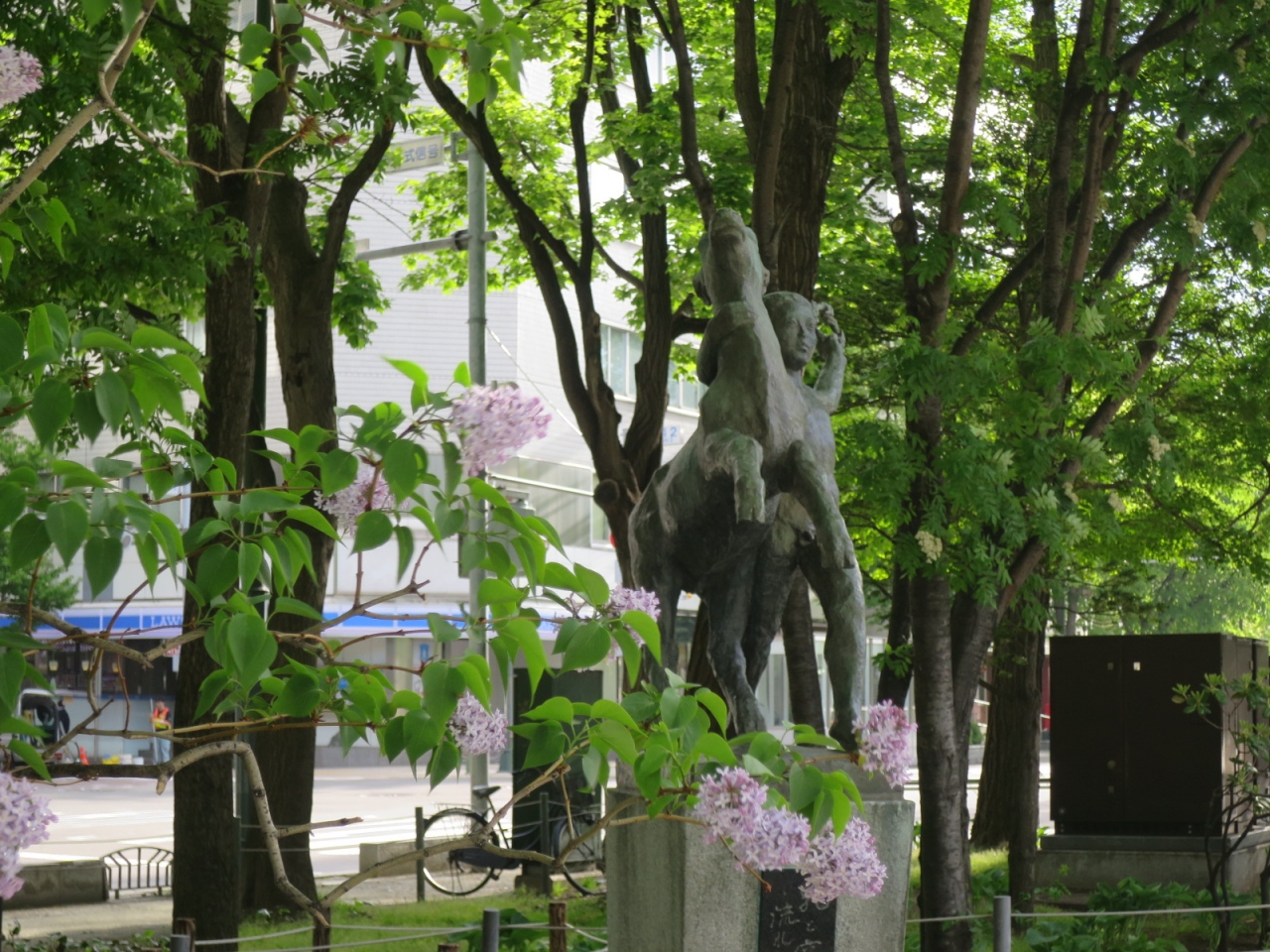 大通公園には緑も多く植えられ、春から秋にかけては茂った葉で像も日陰になり、目立たなくなってしまいます。