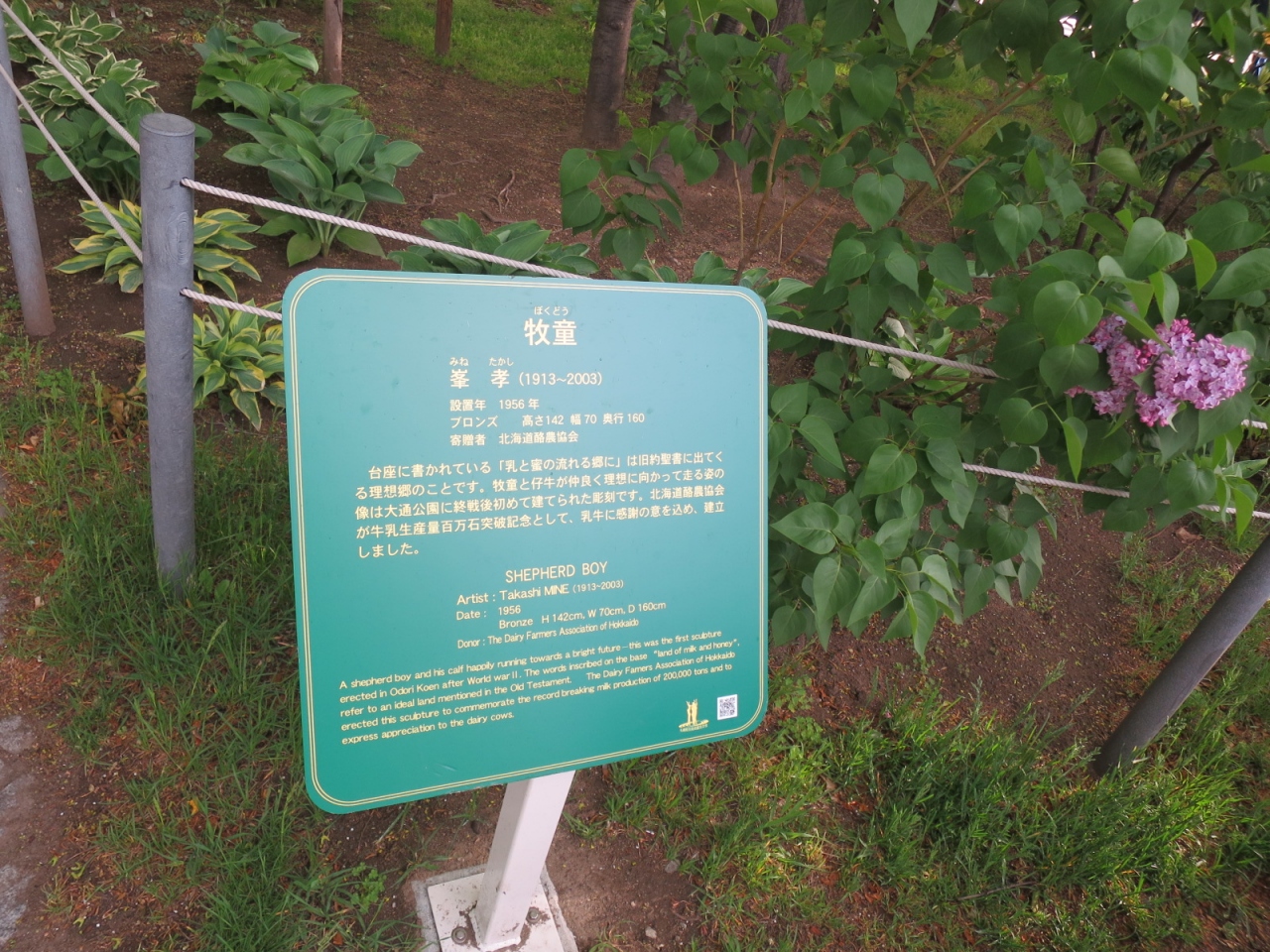 隣に解説板があり、大通公園で終戦後初めて1956年に設置された彫刻とのことです。