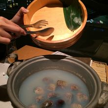 はまぐりのお出汁ではまぐりのしゃぶしゃぶをするという、何とも贅沢な一品でした。