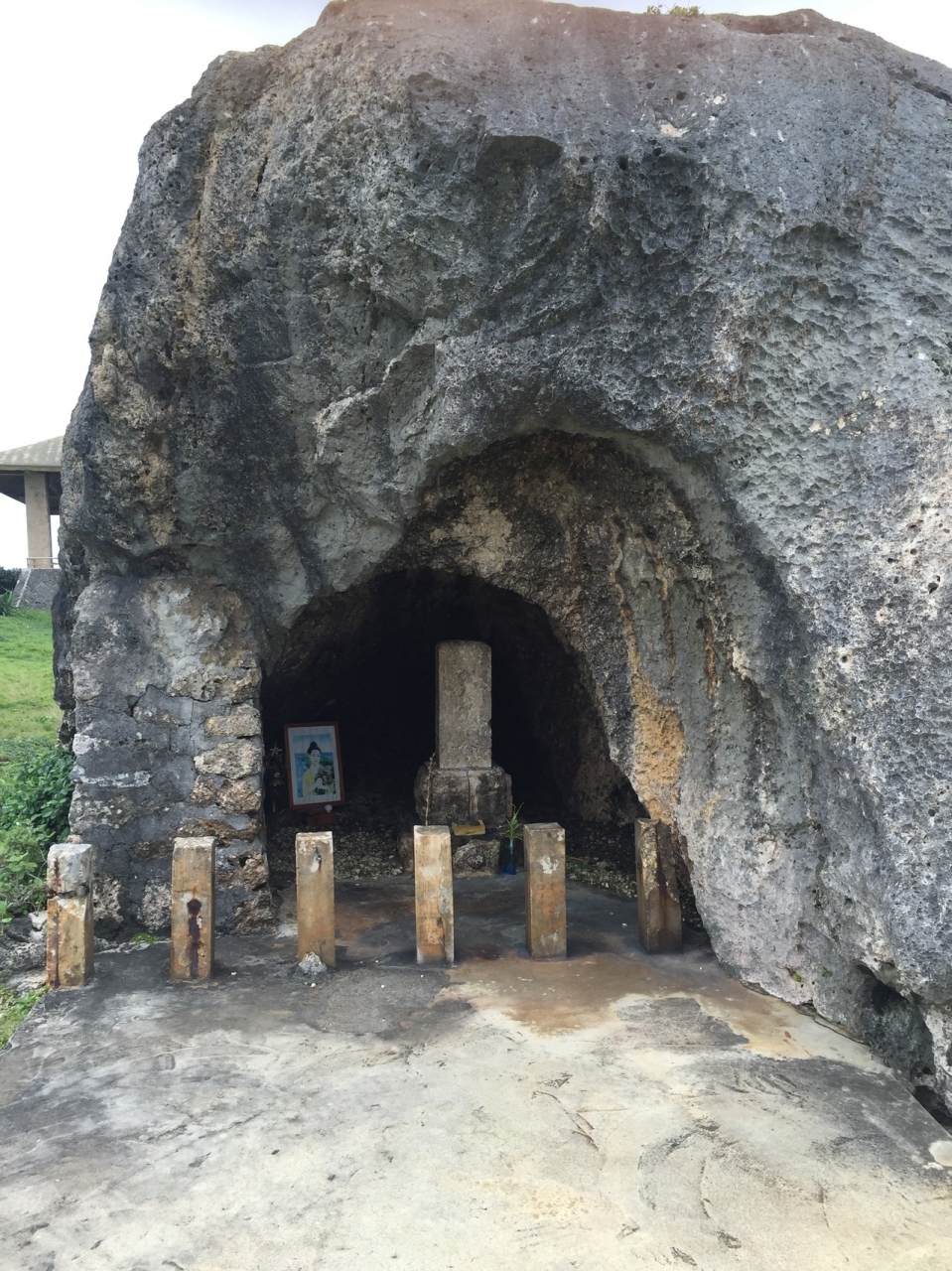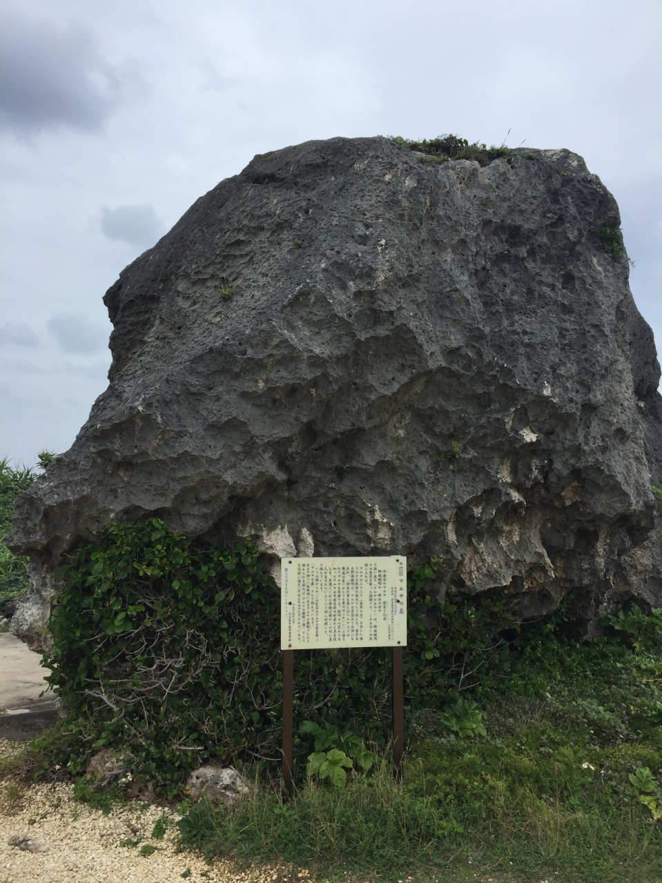 東平安名崎の駐車場から灯台まで歩いて行く途中にマムヤの墓はあります。遠くから見ると大きな岩なのですが近づくとわかります。写メは表側だけ撮ろうかと思いましたがやはりお墓も撮らせてもらいました。悲しい物語を知ると思わず手を合わさずにはいられない場所です。