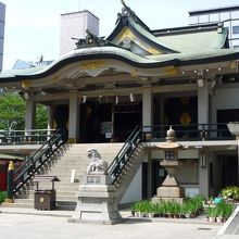 心斎橋と本町のちょうど同じくらいの距離で御堂筋沿いにあります。主祭神は仁徳天皇です。心斎橋から御堂筋に出て梅田方面に歩いて行くと向かって左側に神社が見えてきます。当日は神社前にコーヒーの量り売りので店が出ていました。