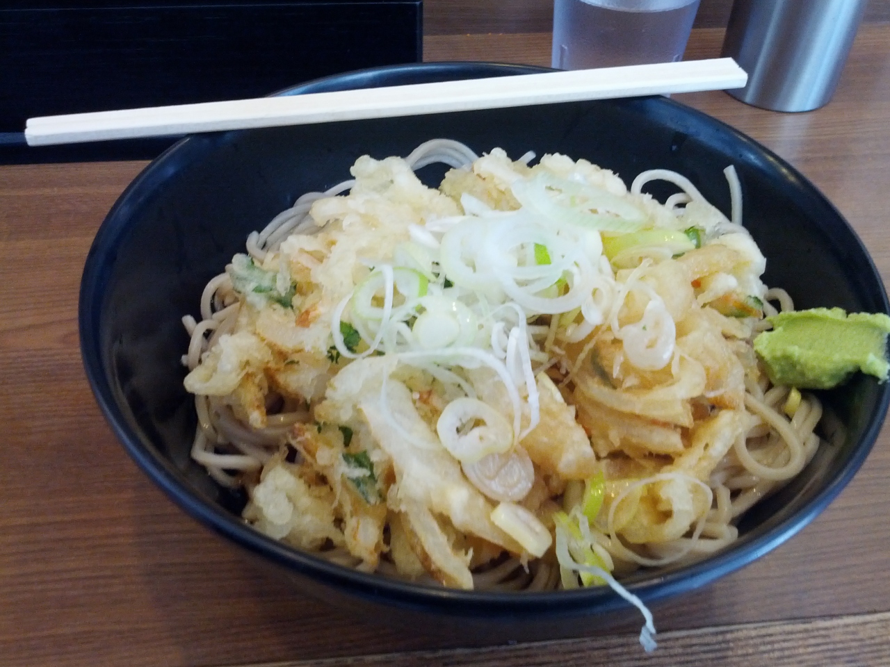 冷かき揚げそばが大好きです「厨房で揚げているのを確認できます」