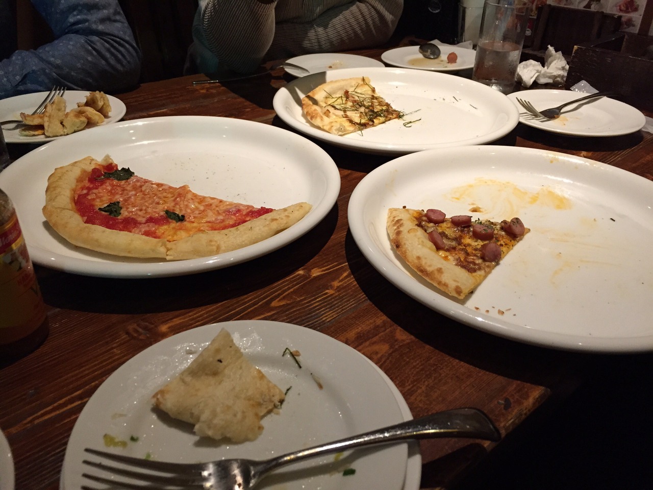 ピザの皿が大きいので、汚れた皿は早めに片付けてほしかったです。併せてパスタなど頼んだものがくるとテーブルいっぱいいっぱいになり落ち着かなかったです。
