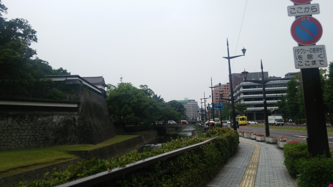 熊本市電の熊本城前で降りて熊本城に向かうときに見ました。