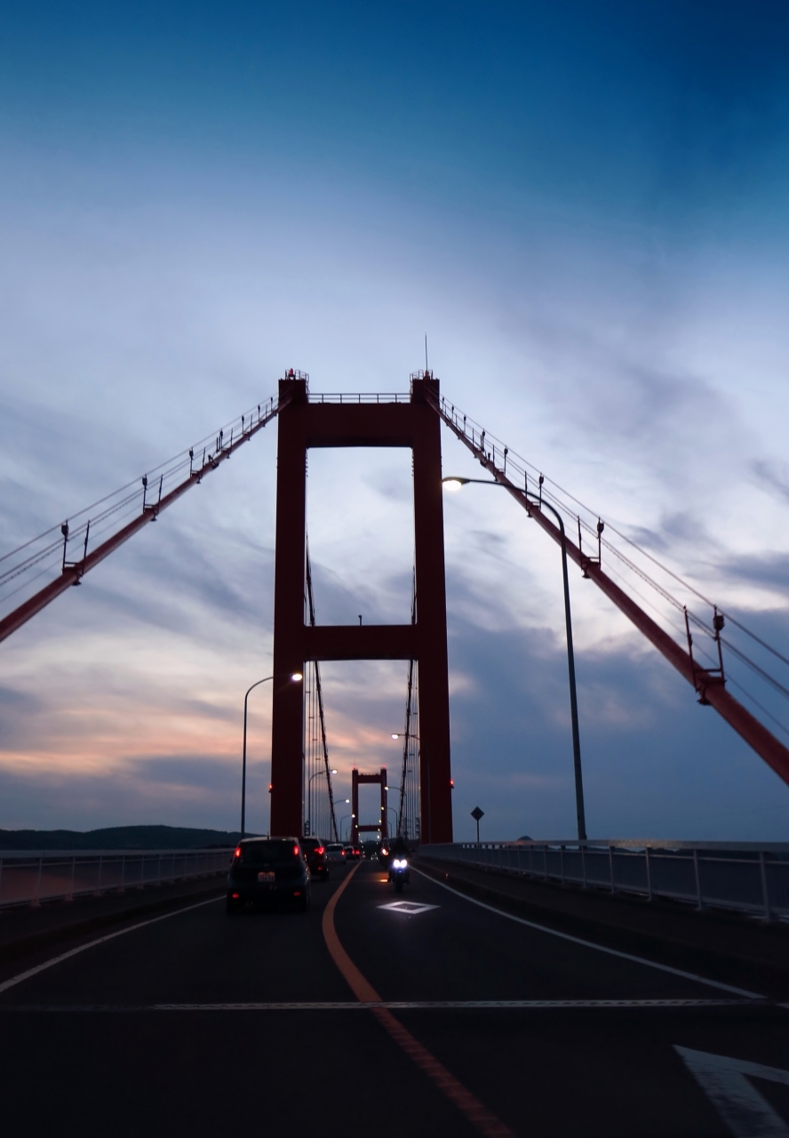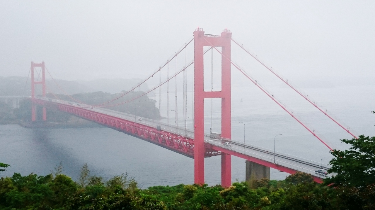 平戸と本土の田平地区とを結ぶ665mの吊り橋。赤い色が美しく、晴れた日は青い海に映え、夜はライトアップもされます。現在は通行料も無料となっており、橋からの眺望もよく「見てよし・渡って良し」の橋です。