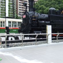 科学館前にはSLや電車の展示もあって、小さな子供たちは嬉しそうに眺めていました。