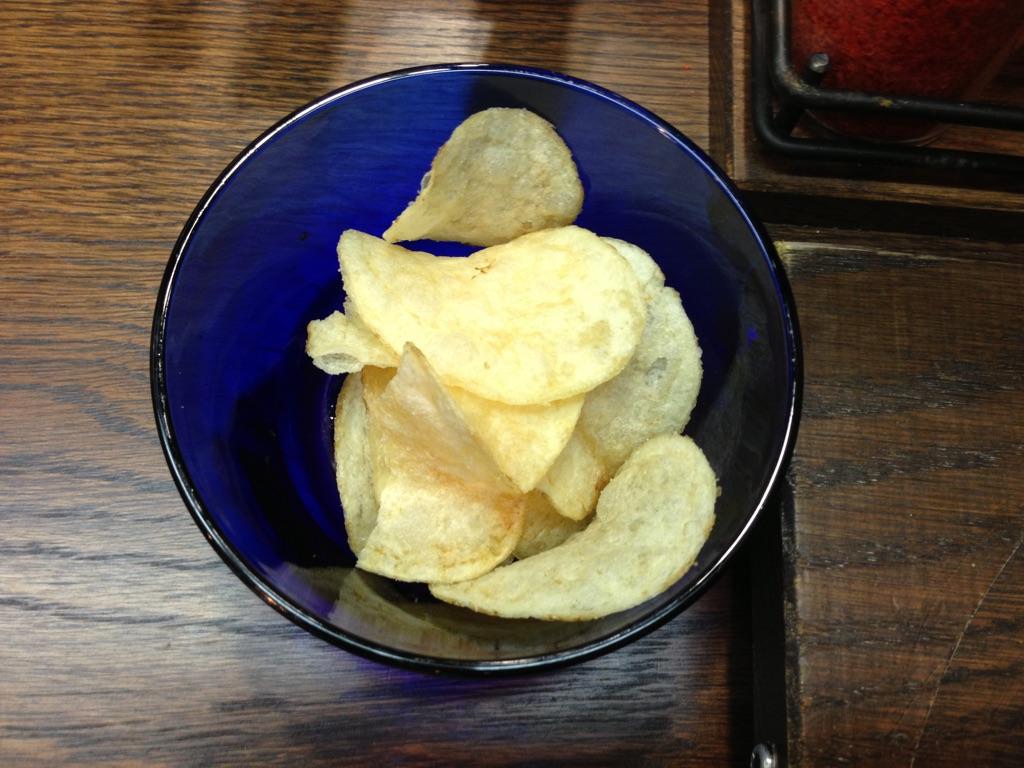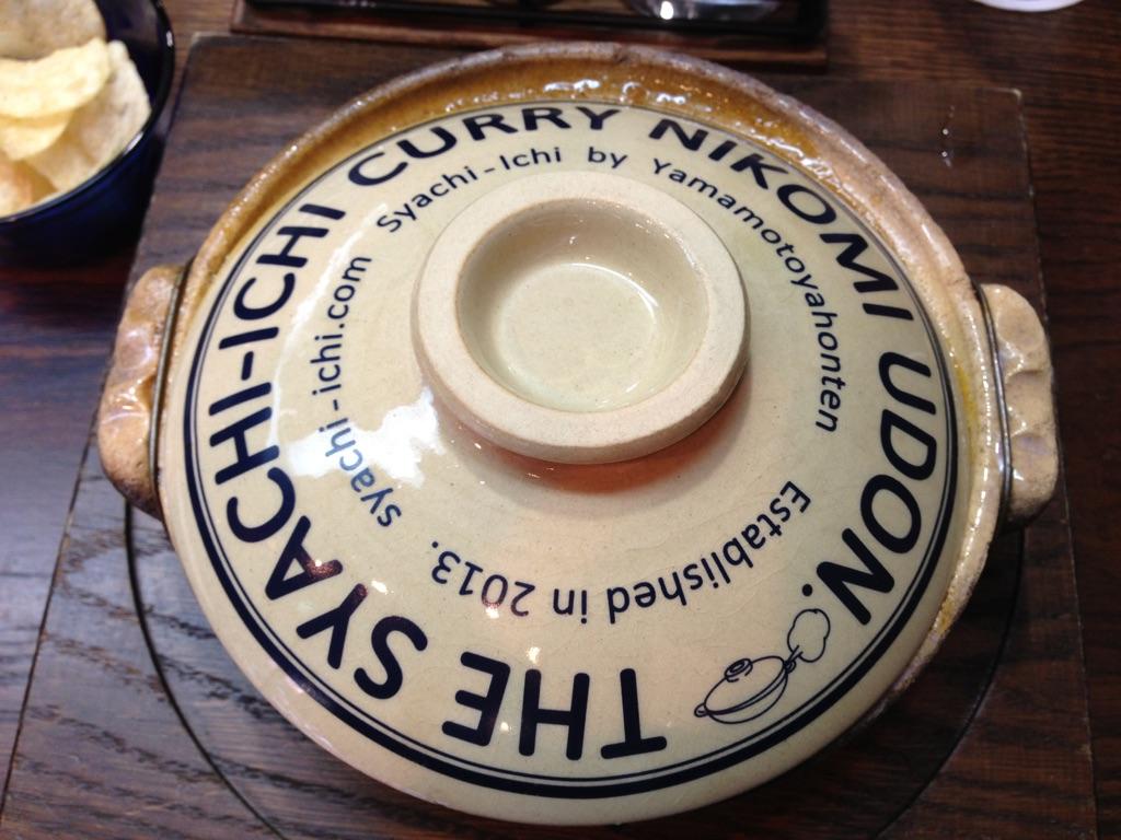 カレー煮込みうどんを注文すると、すぐに小皿に入ったポテトチップスが運ばれてくる。それをぽりぽり食べている間にカレー煮込みうどん登場!!味噌煮込みうどんと同じような土鍋に入っている、少々蒸らして、蓋をあける。蓋は取り皿として使用する(なので穴があいていない)。