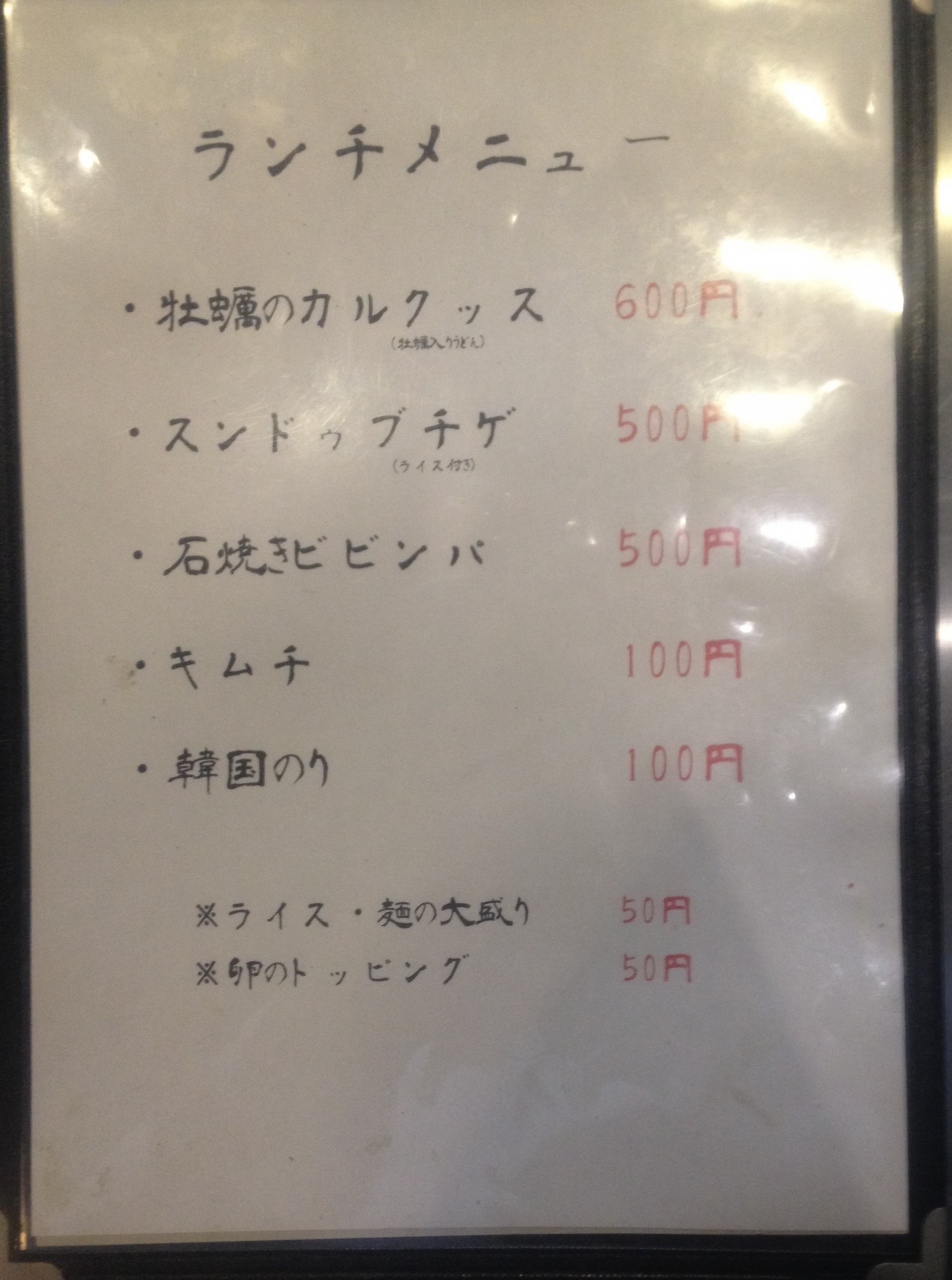 スンドゥブチゲ(500円)と韓国のりを注文しました。