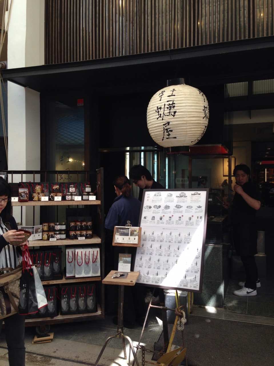宮島の商店街?飲食店やお土産屋さんが並んでいる道にある「牡蠣屋」。