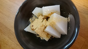 くずもちは弾力があって、きなこと黒みつがいい感じで