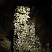秋芳洞の黒谷支洞にある景観スポット。多くの石筍があわさってできあがった複合石筍だそうで高さ8mのごつごつした岩は迫力のある景観。石の表面は長い年月をかけて形成された芸術性を感じさせるもので自然の不思議さを感じさせられる。
