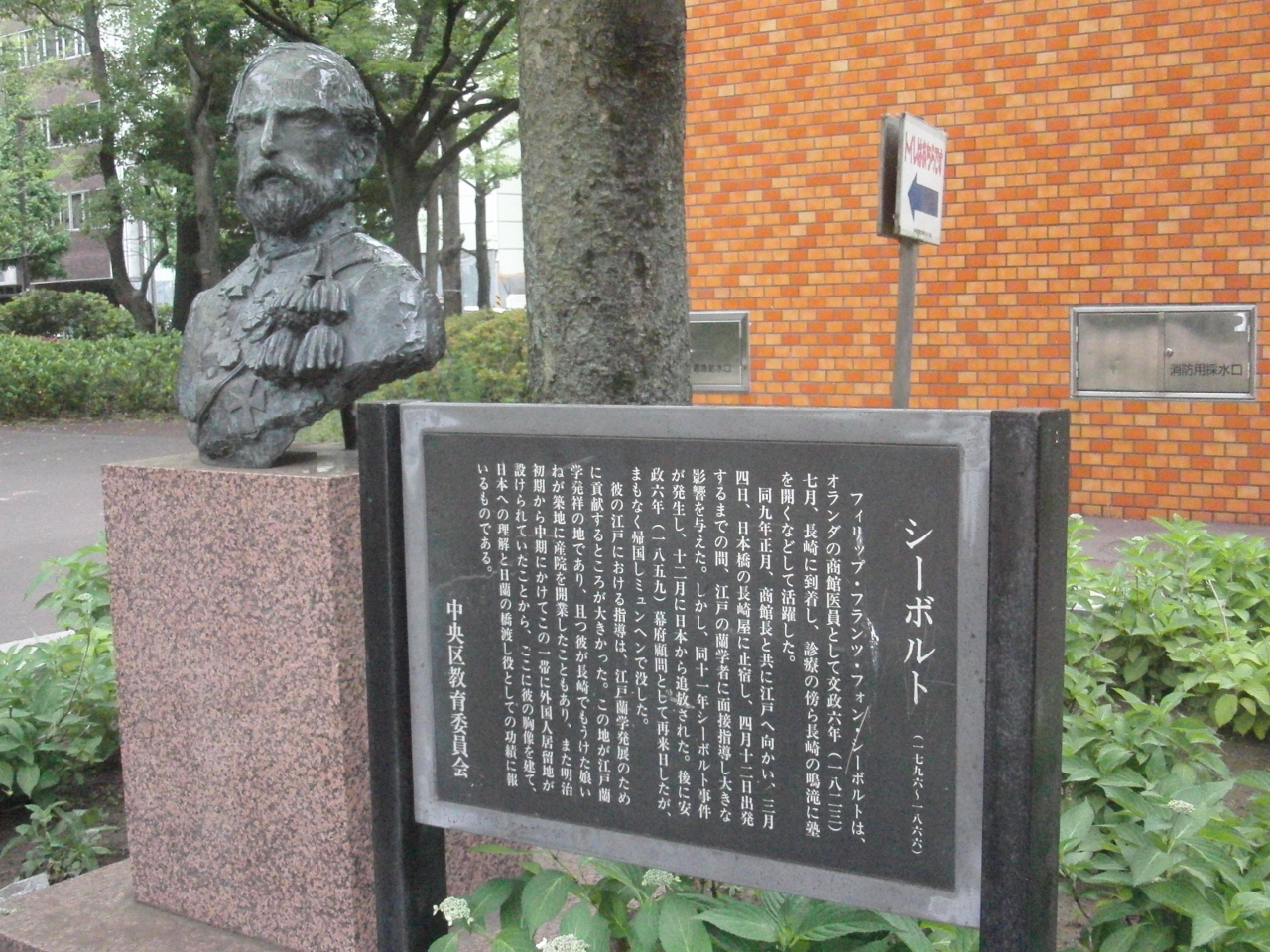 近くに「蘭学事始の地」「慶応義塾開塾の地」があり、歴史を感じるエリアになっています。
