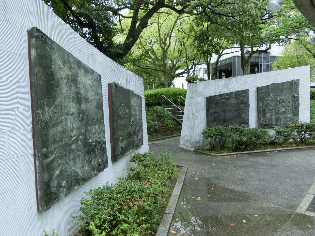 塔の元には動員された学徒の出身校が書かれたプレートや当時の様子の描かれたプレートもありました。