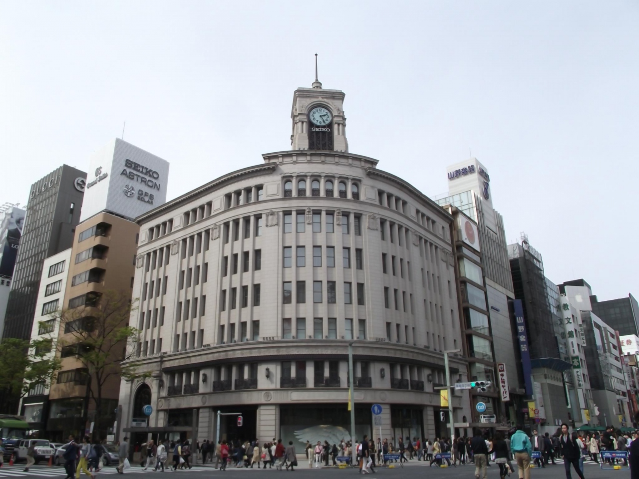 ここは、東京銀座四4丁目交差点角にある時計台などでも有名な時計や宝飾品などの専門店です。