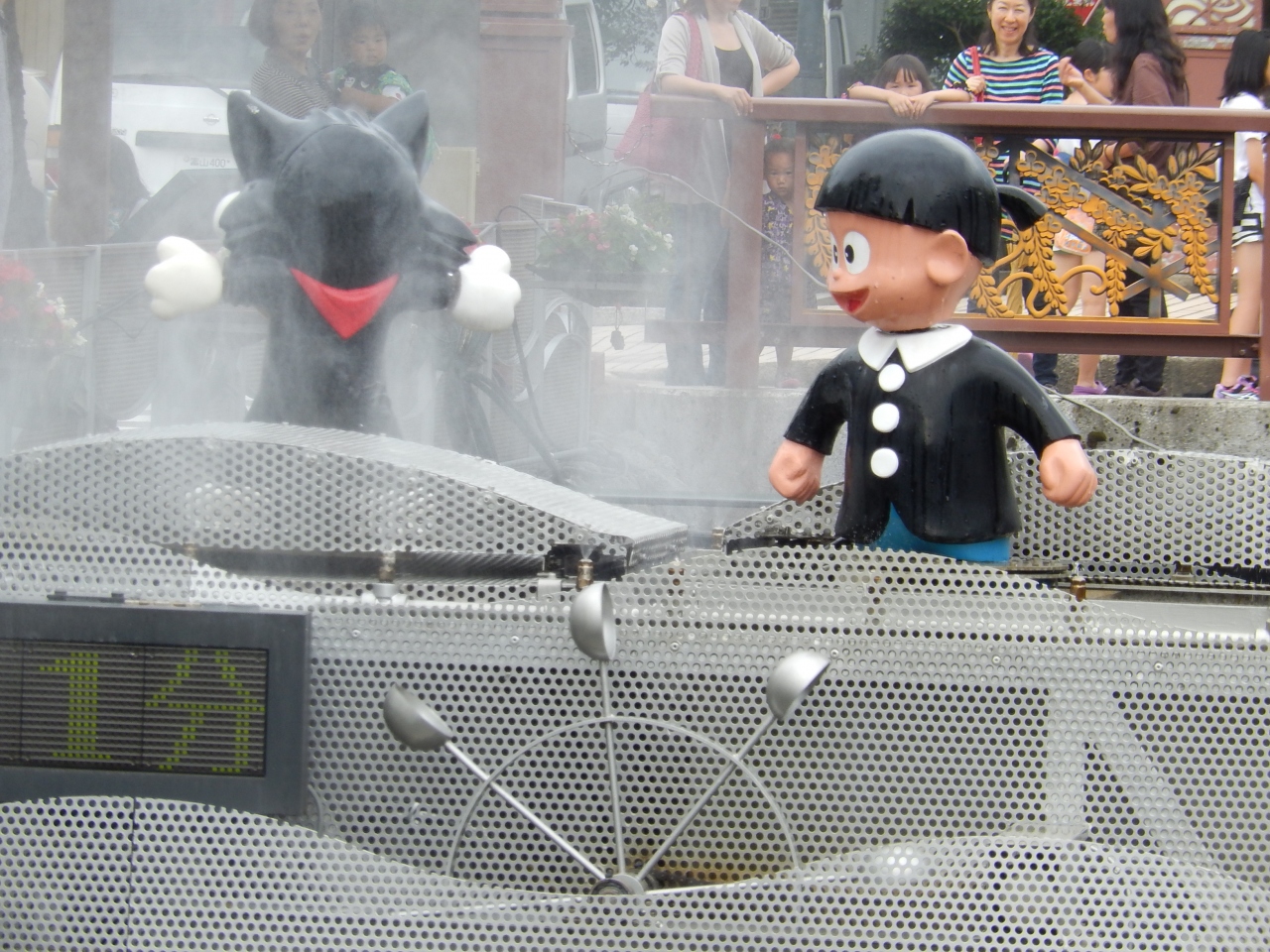 ちょっと変わった橋の正体は。。。橋全体がハットリくんの「からくり時計」