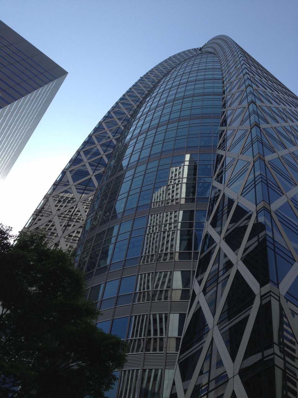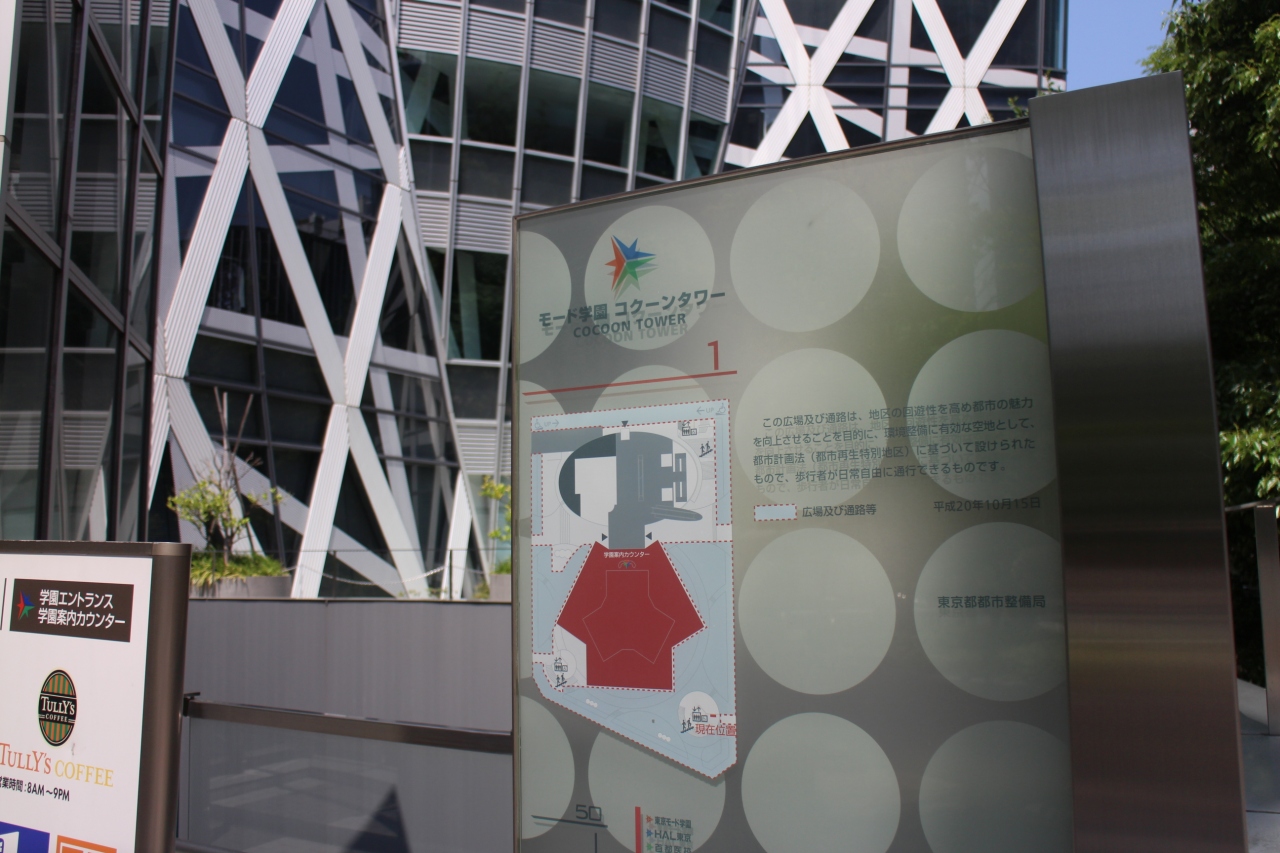 新宿駅西口を出ると真正面に見える楕円形で襷模様に外装をおおわれたインパクト抜群のビルは東京モード学園のビル、デザインや創造性を豊かにする意図があるシンボルタワービルです。