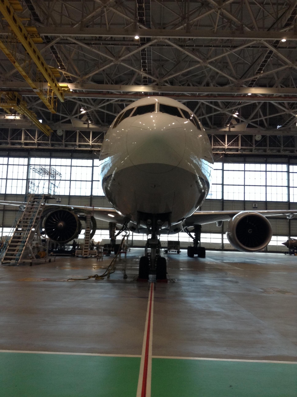 日航の見学ビルよりも新整備場から遠く、時間が押していたのでダッシュしました。 見学前に講義がありましたが、子供向けで、航空知識がある人間にとってはちょっと物足りないです。 工場には、777が2機、787が遠くにいて、777を間近に見ることができました。4月なのに、相当寒く分厚いジャケットを着て行きましたが、整備員の人たちはTシャツ一枚で作業をしている人がいて驚きました。 777は前に日航の見学で見ていましたが、日航の時よりも機体に近づけたので、まじまじと観察することができました。ゼネラルエレクトリックのエンジンや、翼のライトなど、すべてがデカく、写真を撮りまくりました。 すぐ予約が埋まってしまうので、半年前から予約をかけてやっととれました。