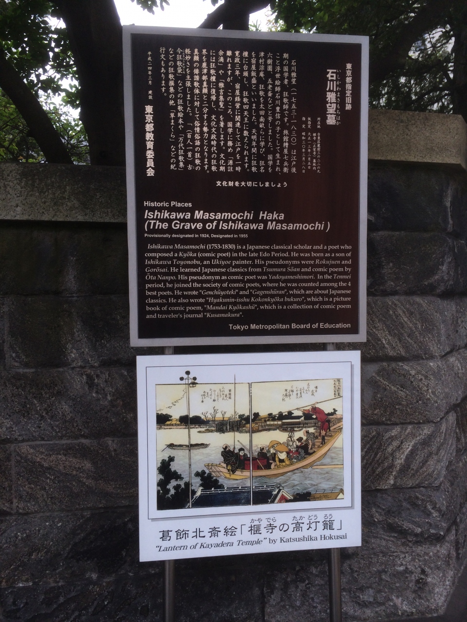東京都指定旧跡の石川雅望氏のお墓があります。
