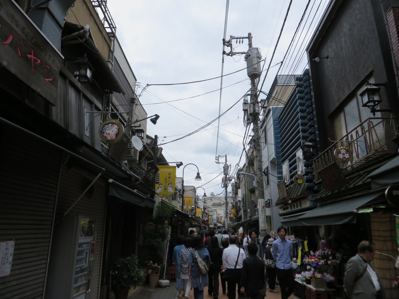 根津側から商店街に入り、日暮里側に抜けるコースを歩きました。商店街の端(ゴール)に有名な階段「夕焼けだんだん」が近づいてくるので、この方向がお薦めです。意外とあっという間に端まで来てしまうので、じっくり、ゆっくりと見ながら歩くのがよいと思います。