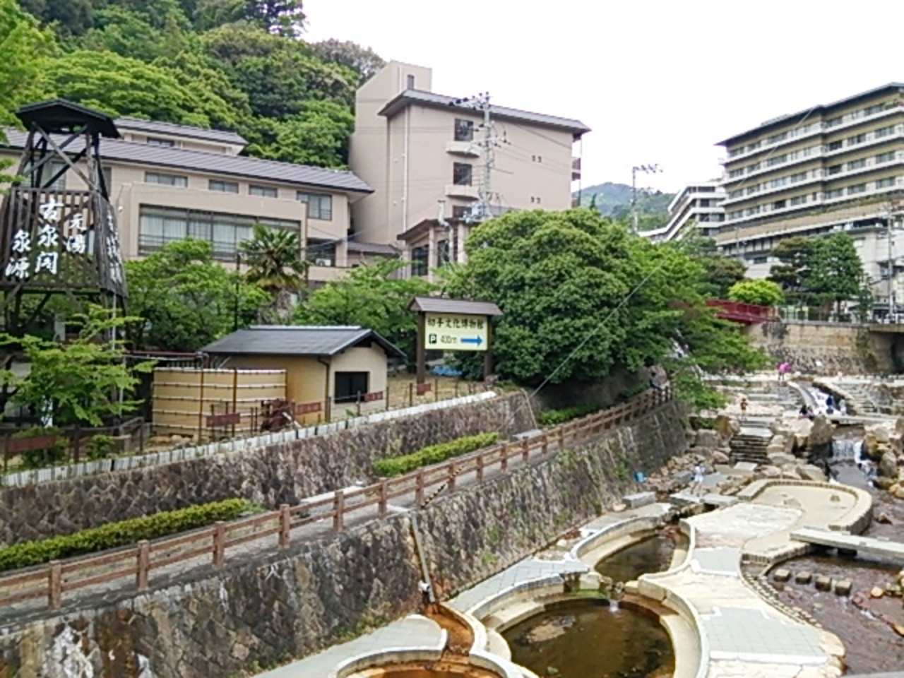 有馬温泉の観光案内所近くの、中心地にあります。結構大きくて、等身大くらいあります。橋からの景観も綺麗なので、写真スポットとしていいと思います。最近は、中国人旅行客が多いですね。お土産屋さんも周りにたくさんあります。