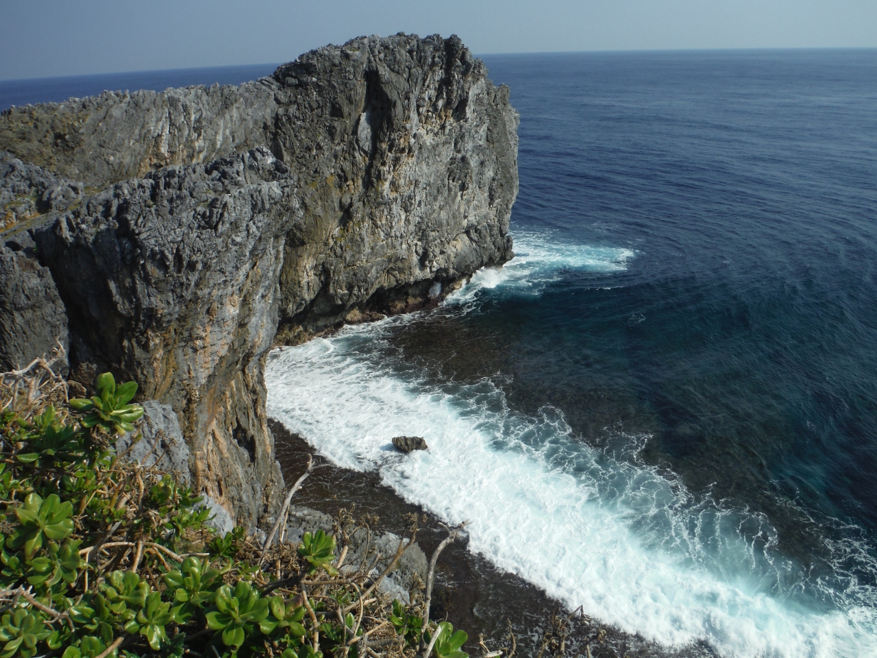 断崖絶壁からの波の凄まじさ、青い海は素晴らしいです。