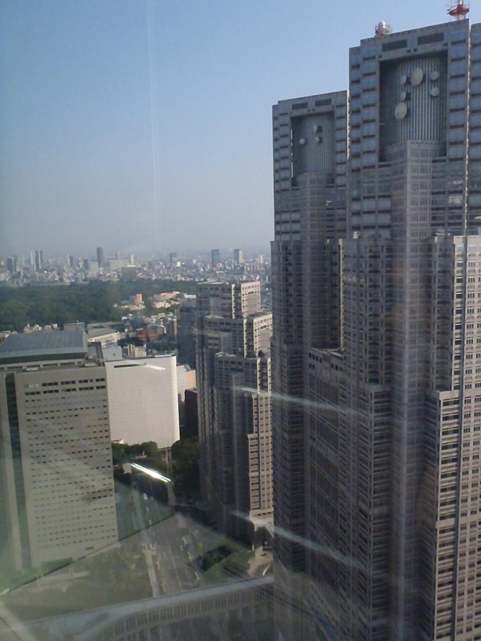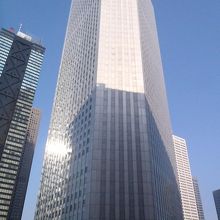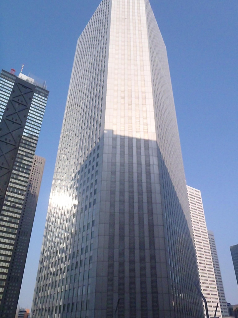 新宿西口の高層ビル街、東京都庁の斜向かい、議会議事堂の隣にある三角すいの角を取ったような高層ビルの51階にあります。