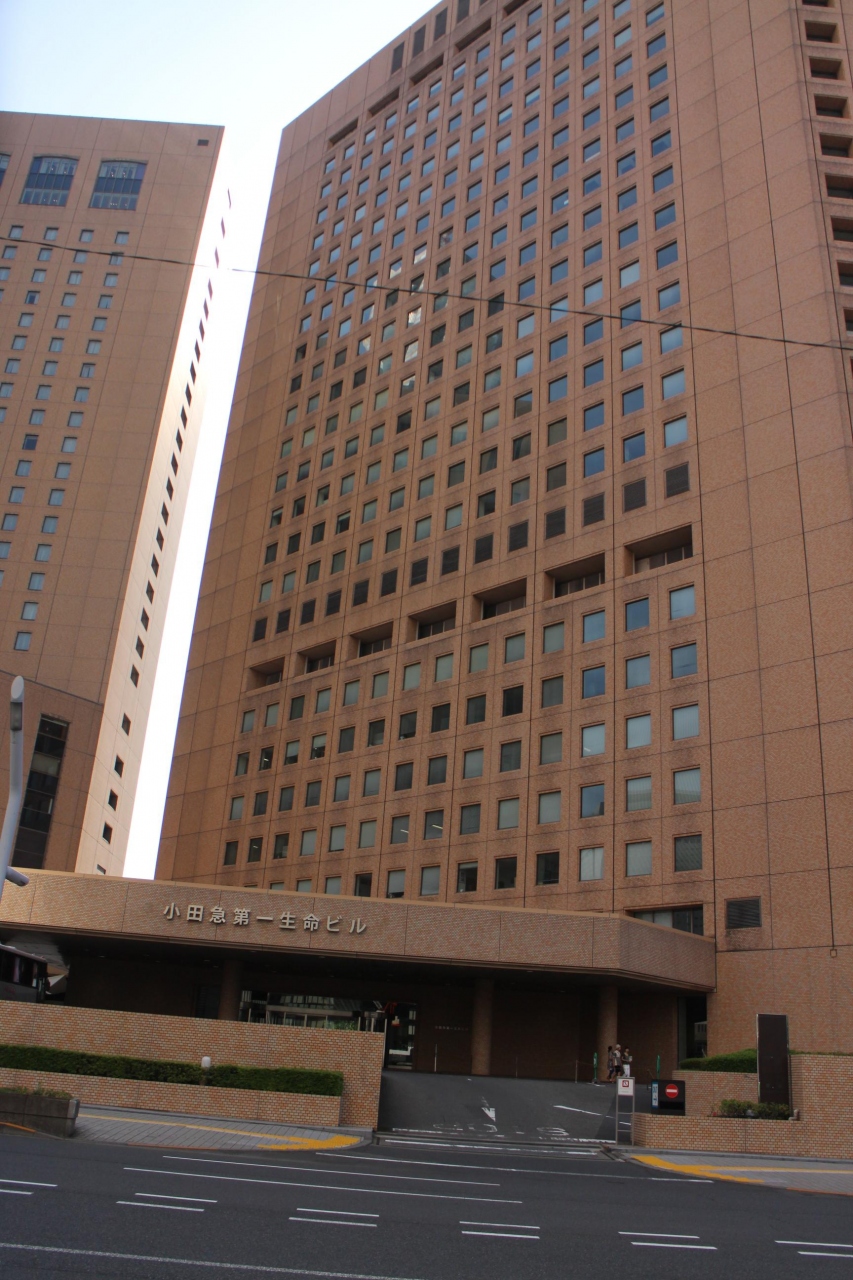 ハイアットリージェンシー東京ビルが向かって左側、そして右側にオフィスやイベントなどが出来るホールを持つのが小田急第一生命ビルです。