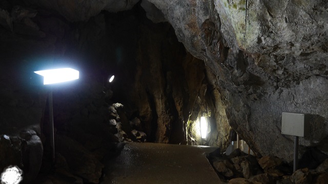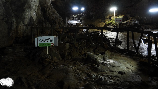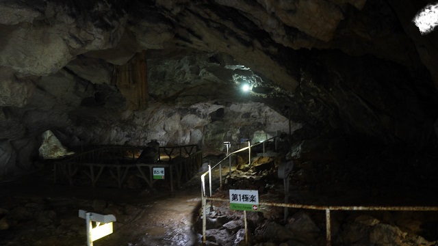 秋吉台周辺の観光地を探していたところ、秋芳洞のほかに2つの鍾乳洞があることを発見。そのうち大正洞は日程上組み込めそうだったのでプランに入れてみた。秋吉台から約6km、1日2往復のバスで滞在時間は約50分と施設の規模やバス停からのアクセスによっては戻れなくなるリスクもあったが、無理なく日程はこなせた。鍾乳洞としては見どころがあると感じたが、秋芳洞という目玉があるのでこちらは人影もわずか。30分もあれば洞内をめぐれる。人が少ない分、ポタポタとタレ落ちるしずくの音を鑑賞しながら洞くつ探検を楽しんだ。
