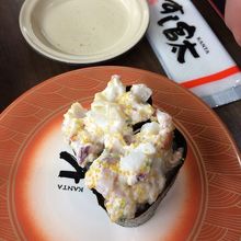 海鮮の軍艦です。貝がコリコリしていて、おすすめの一品です、様々な工夫を凝らした寿司ネタを展開しているので見た目もそうですが、味も楽しむ事のできるそんなお店です。