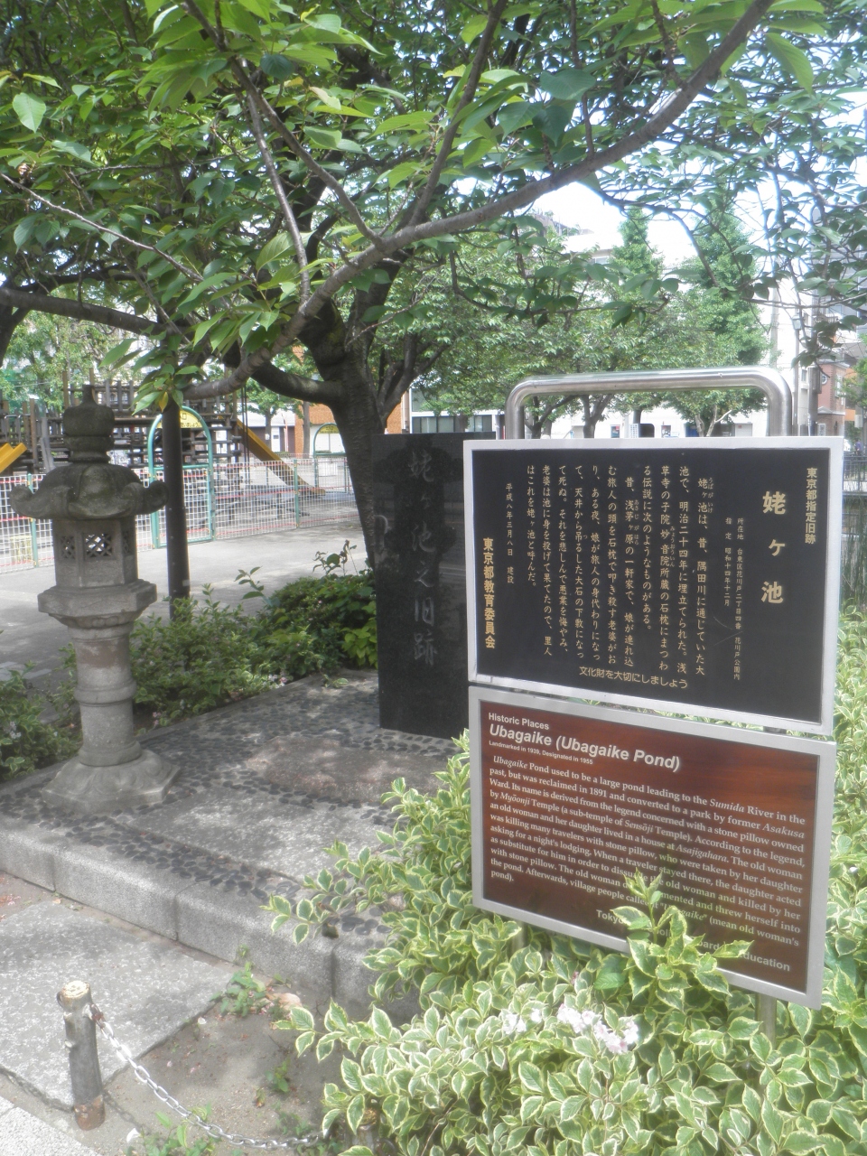 東京メトロの浅草駅から浅草寺に参拝したあと、混雑をさけて裏口から隅田川に向かう途中に、花川戸公園があります。この公園には、助六歌碑のほかに、「姥ヶ池伝説」の石碑もあります。 旅人にはおっかない話で、カミュの「誤解」みたいな話だと思いました。 周辺は住宅街で浅草寺の賑わいから離れた感じがしました。