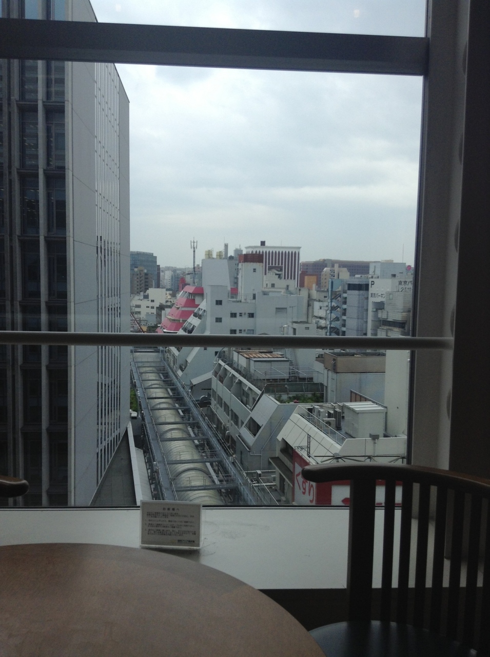 空いている穴場スポットで、大きなガラス窓からキャナルシティまで見えます。