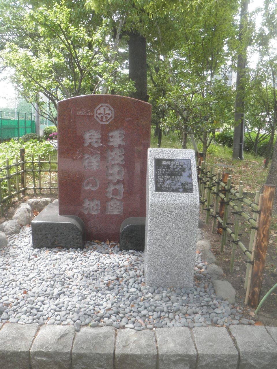 隅田公園のこといい橋の近くにある本龍院(待乳山聖天)の向かい側に石碑があります。茶色の石碑で、見た目新しい感じで、「平成中村座発祥の地」と刻まれています。周囲は公園で、グラウンドがあるので、若人のげんきのいい声が響くようなところです。