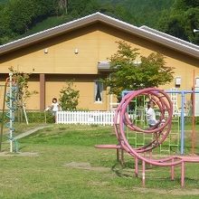 屋外は芝生のスペースに遊具も有りちょっとした公園のようになっています。
