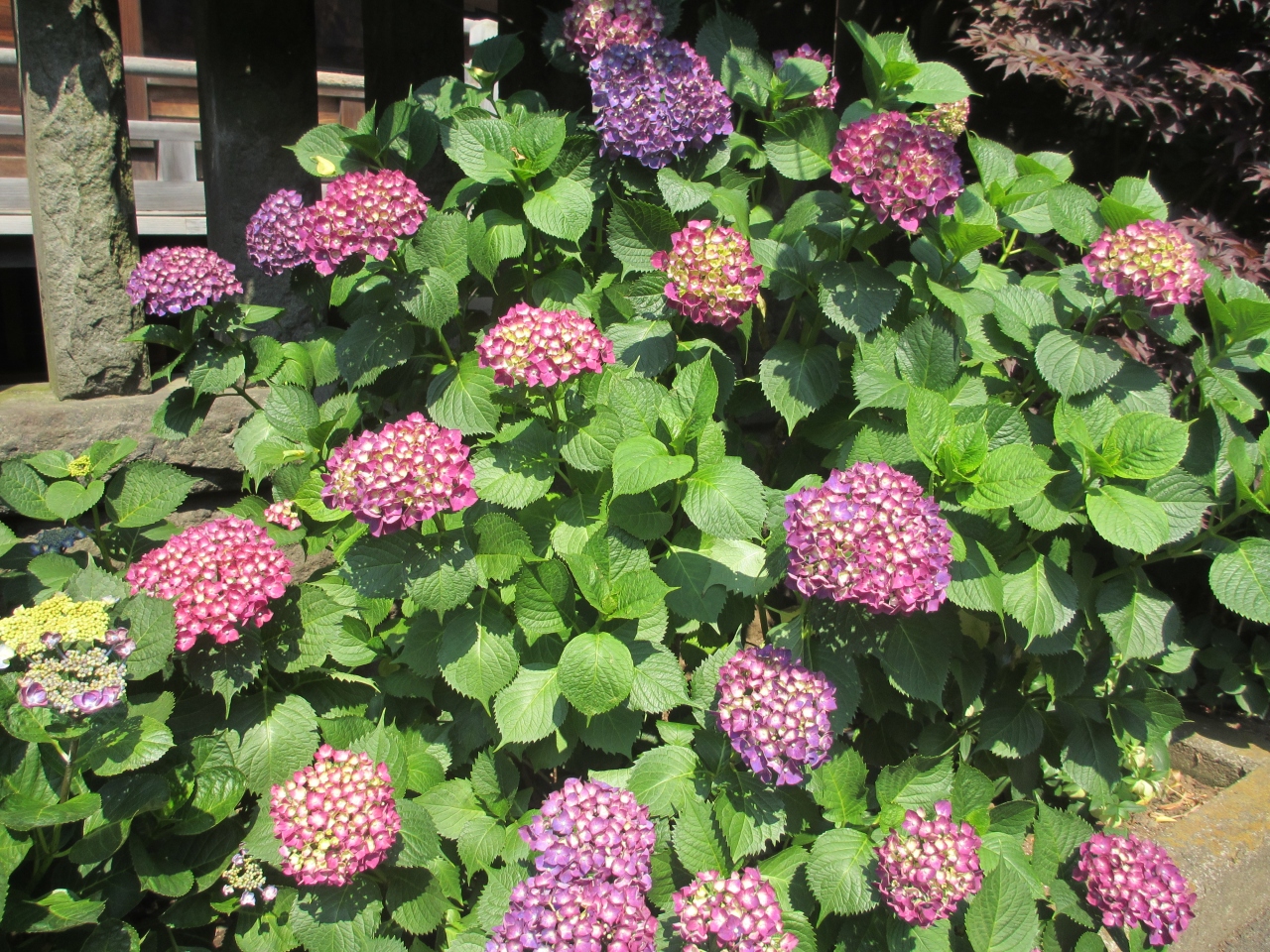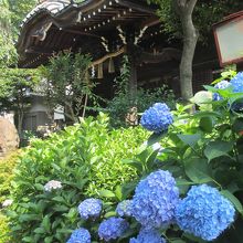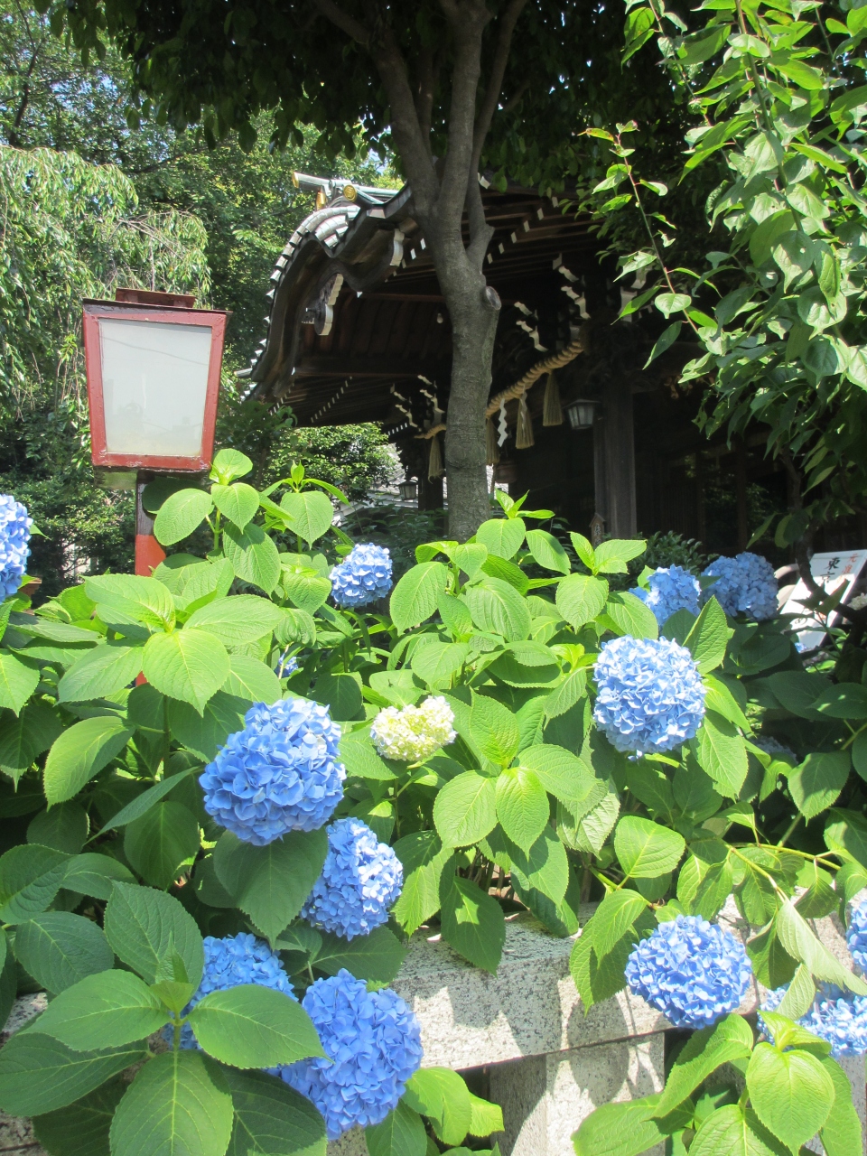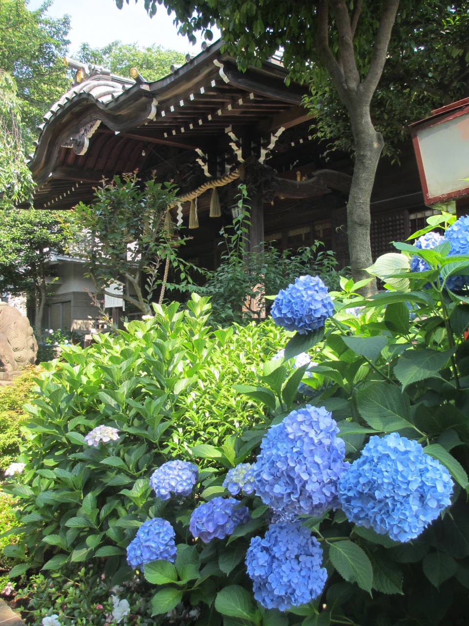 アジサイ祭りまであと1週間という時期にあじさいを見てきました。満開というわけにはいきませんでしたが、早咲きのアジサイがきれいに咲いていました。満開の時期には境内にあふれんばかりに咲き競うあじさいですが、ひっそり咲くこの時期のアジサイも見応えがあります。祭りの期間には富士塚も解放され、異なった角度からあじさいを観賞できるようです。