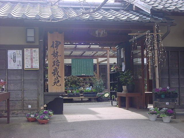 多くの観光客でにぎわう伊勢神宮内宮。参道にある「おかげ横丁」の中にある植木屋さん。飲食店や土産物屋が多い一角にあって異色の存在。シーズンごとにいろいろな花を見ることができるので、少し覗いてみるだけでも楽しいと思います。