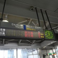 りんかい線は大崎駅から出発しています。埼京線に乗り入れているので埼玉方面から直通で来る電車もありますが、一部の時間を除けばだいたい座れます。どうしてもというときは大崎始発もあるので、それに乗れば間違いなく座れます。ほとんどが地下なので外の景色は望めませんが、天王洲やお台場、京葉線の新木場に行くにはとても便利な路線です。