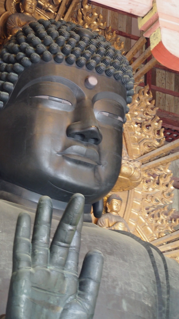 久々の東大寺。海外の観光客と修学旅行生と仏の観光客ととにかくすごい混雑ぶりです。それにしても大きい。しばらく見続けられます。ぐるっと一周できるのもいい楽しい。他にも大きな菩薩様や天部の像があります。空いている時にも見てみたいです。大仏殿は外観もかっこいい。芝の緑とよく合って素敵でした。写真撮影を許可しているのでしっかり思いでが残せますね。ありがたいです。