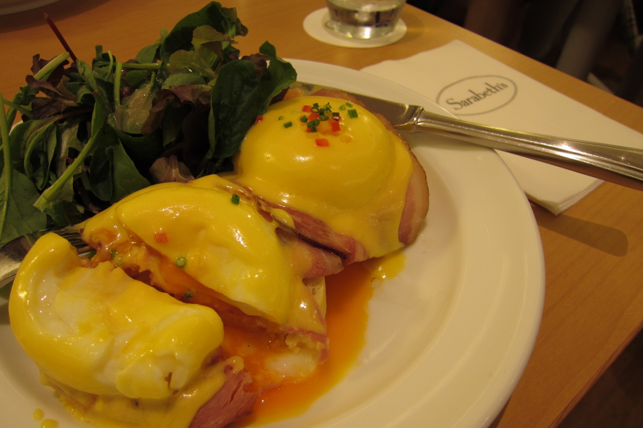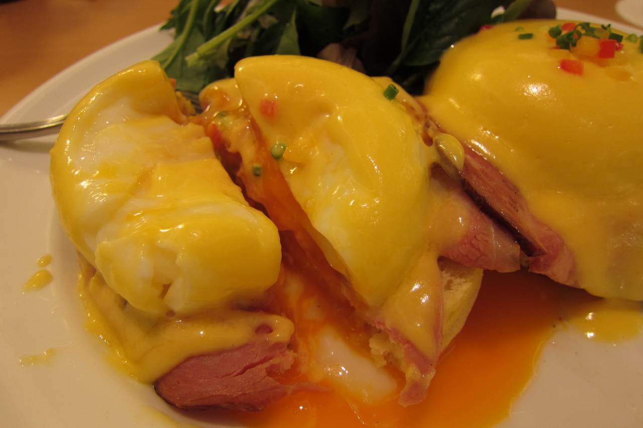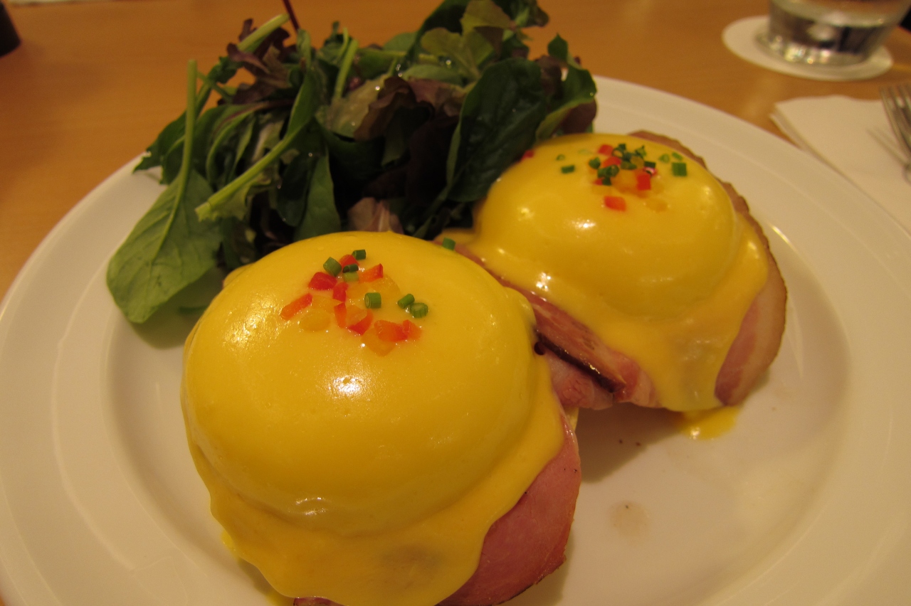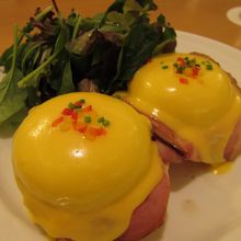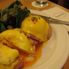 最初なのでお店の看板商品のクラシックエッグベネディクトを注文。周りを見回しても半分以上の人が注文しているようでした。