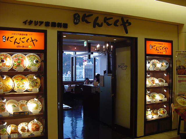 多くの商業施設が集まっている伊予鉄道の松山市駅前に立地する「いよてつ高島屋」のレストラン街に入るお店。窓際の席は展望がいいです。ランチはパスタ、ピザ、オムライス、ドリヤからメインを選んで、ドリンクと大根サラダがついて1080円とお得感がありました。