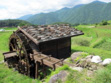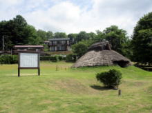 JR信濃境駅近くの道路沿いに公園として、縄文時代中期の遺跡が復元されています。気を付けて見ていないと通り過ぎてしまうほどです。公園内には遺跡小屋と水車が展示されていました。隣の植栽田には美しくスイレンの花をつけていました。近くにある土器や石器などが展示されている民族資料館と合わせて訪れると面白いと思います。