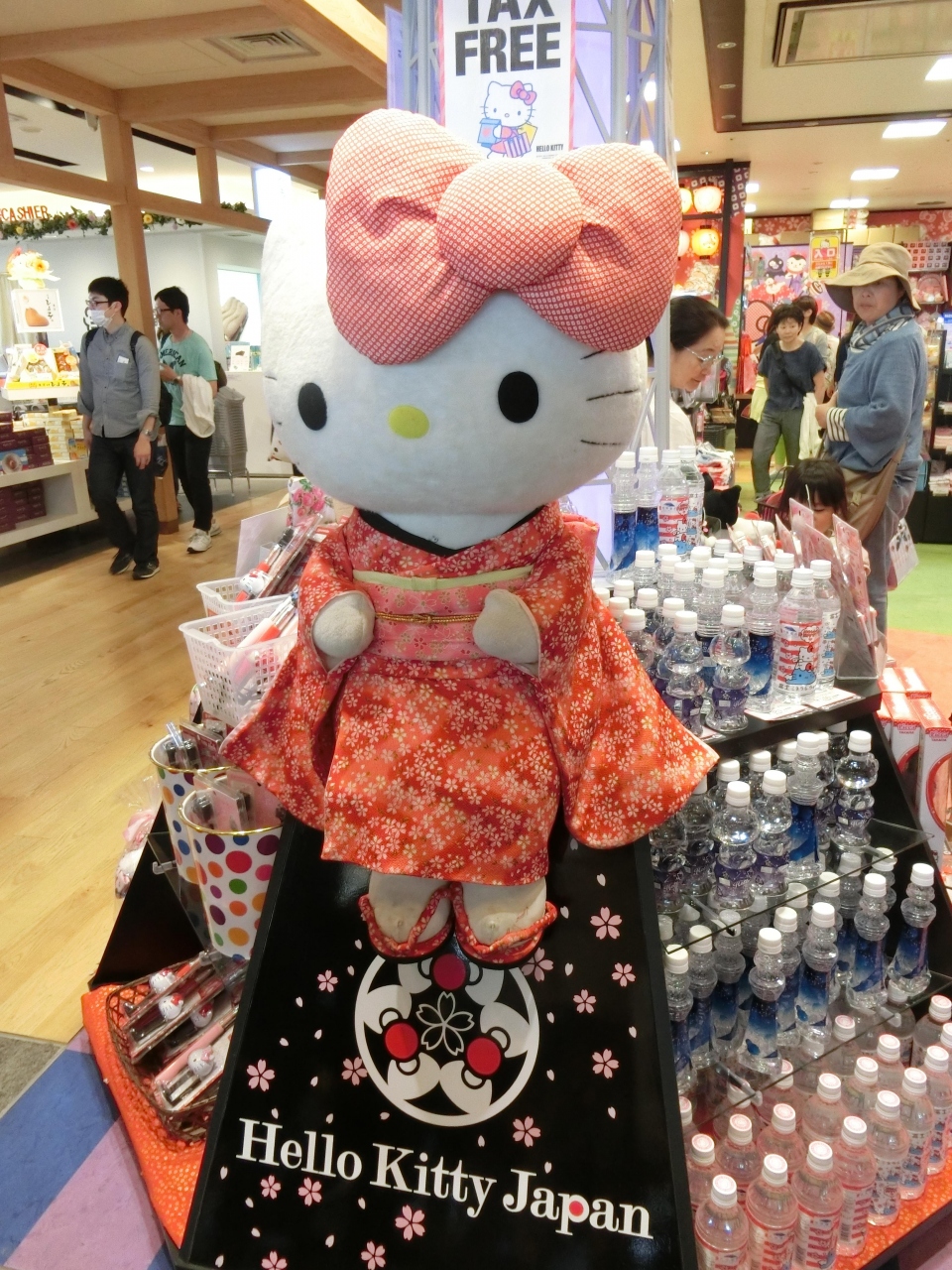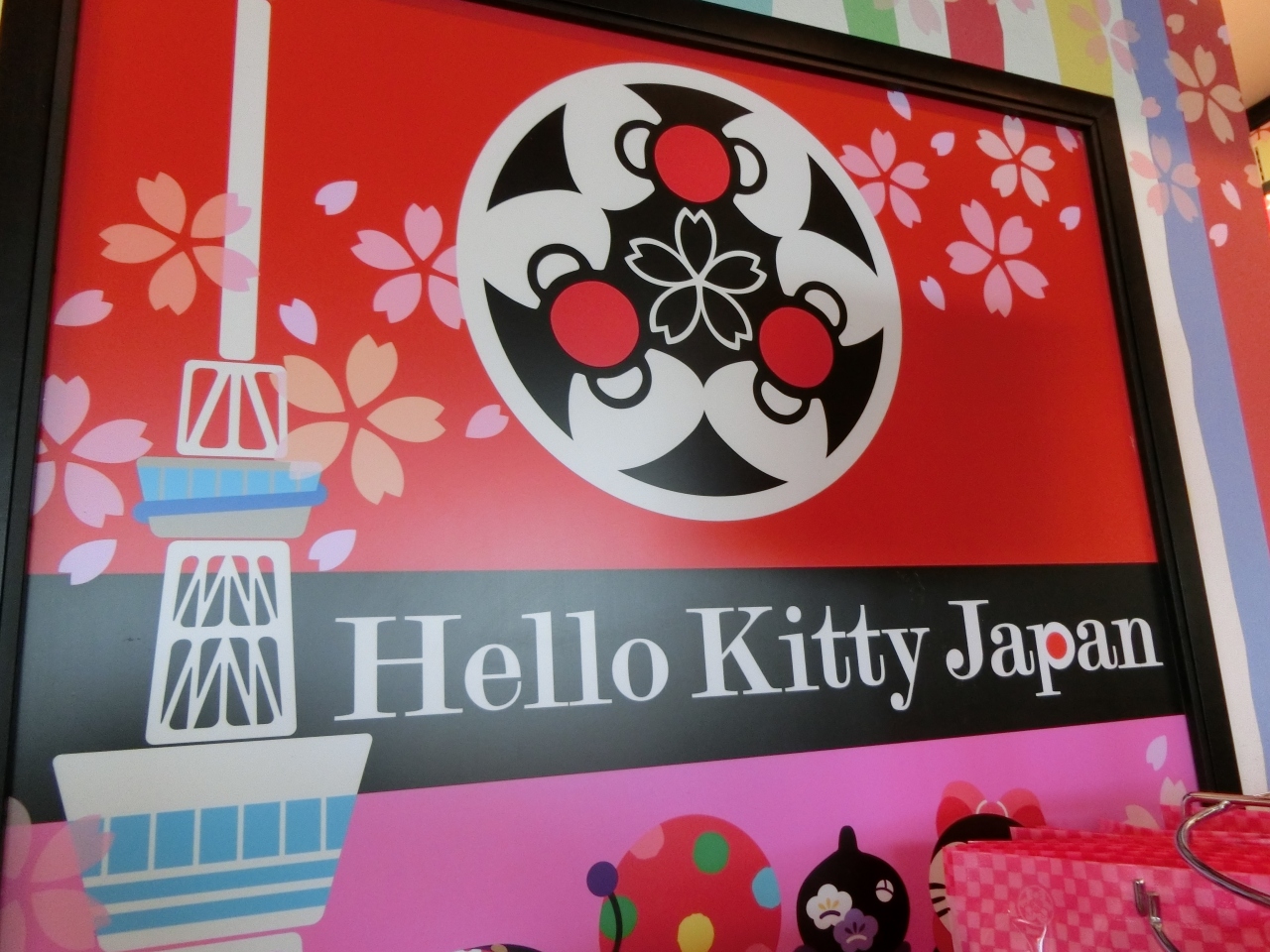 店頭には着物を着てリボンを付けたキティの人形がスカイツリーのオブジェの前にいて、記念撮影してる人もいました。