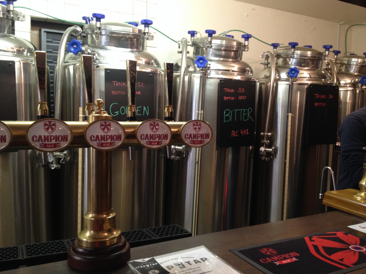 東本願寺の近くにあるカンピオンエール浅草醸造所。1階で自家製クラフトビールを作っています。1階で注文するとイギリス人オーナーが出来たてのクラフトビールをゆっくりグラスに注いでくれます。ビターとゴールデンを飲みましたが、まだちょっと若い感じかな。冷えも足りなくちょっと残念でした。